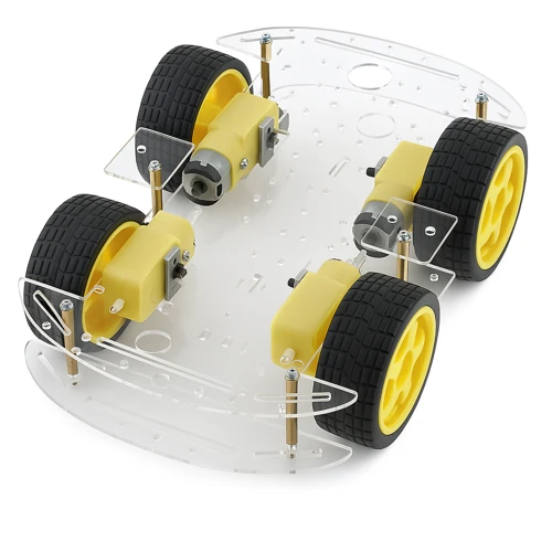 الهيكل المستخدم في هذه المجموعة شفاف لتسهيل رؤية وتثبيت المكونات المثبّتة على السيارة الروبوتية.